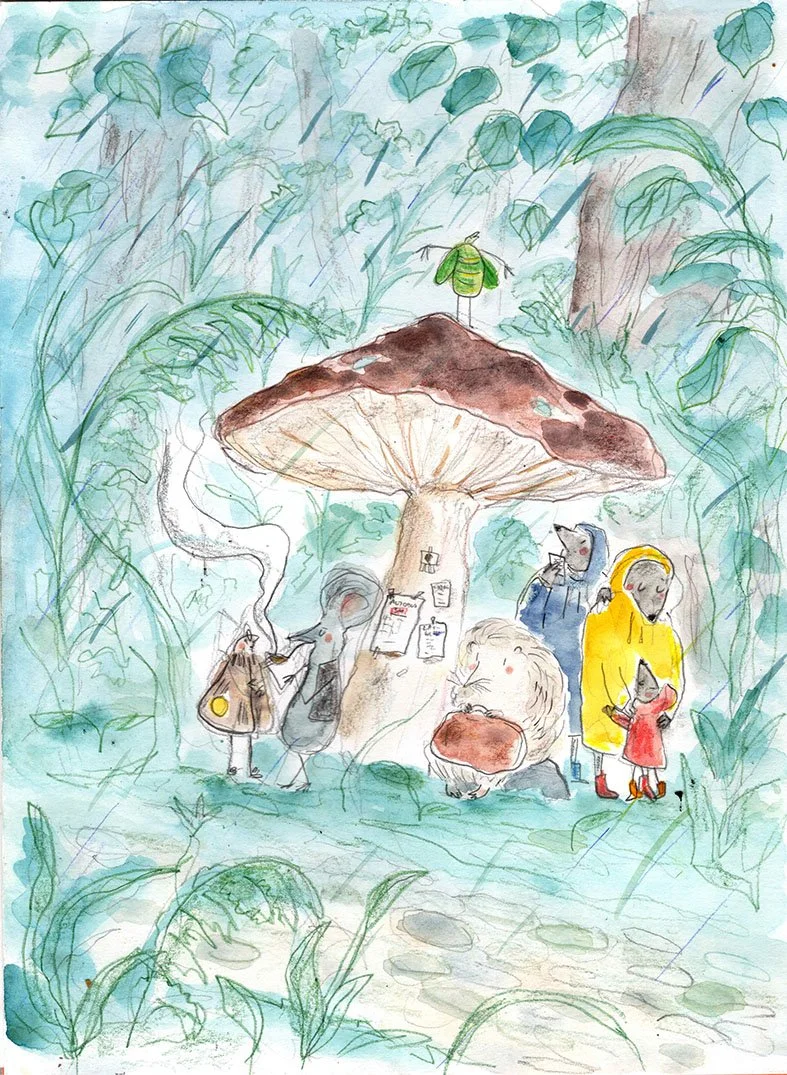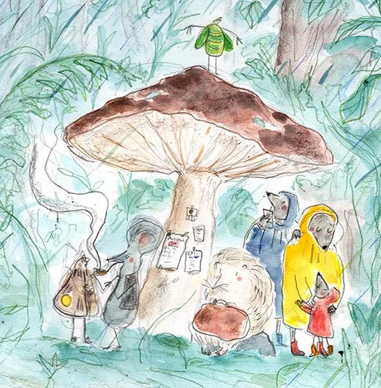 When the sun is out, the animals love to walk around. But when it rains - well, better wait at the mushroom stop for the forrest bus to take you to your destination!