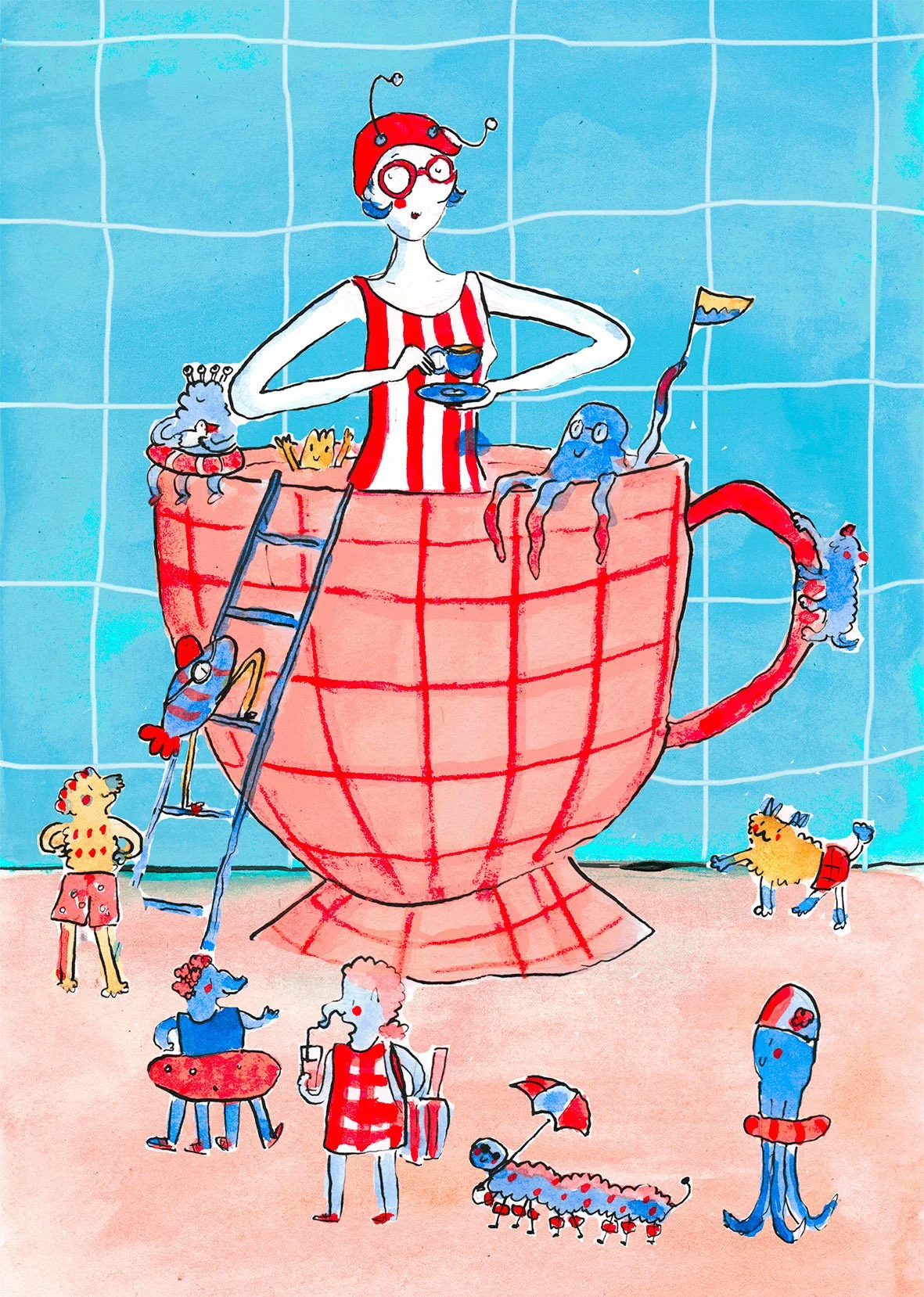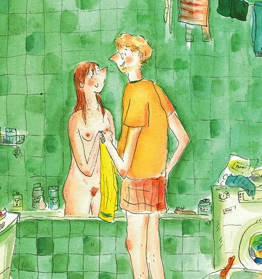 That private work was inspired by countless baths and goes to all theThe illustration was created for the exhibition “Tender Coexistence”(part of the Laba Festival 2024) in Otwarta Parcownia Jazdów and was inspired by countless baths.