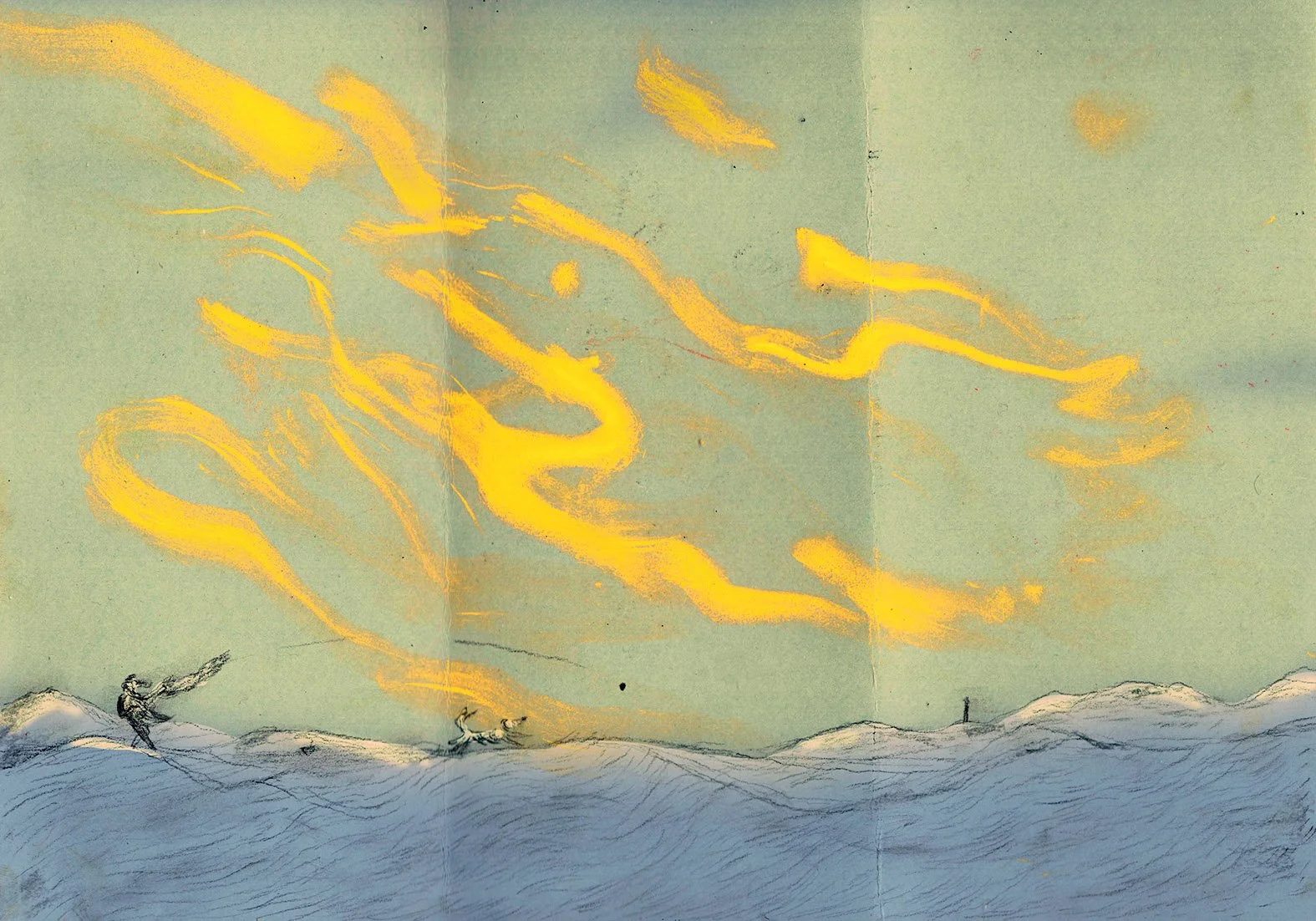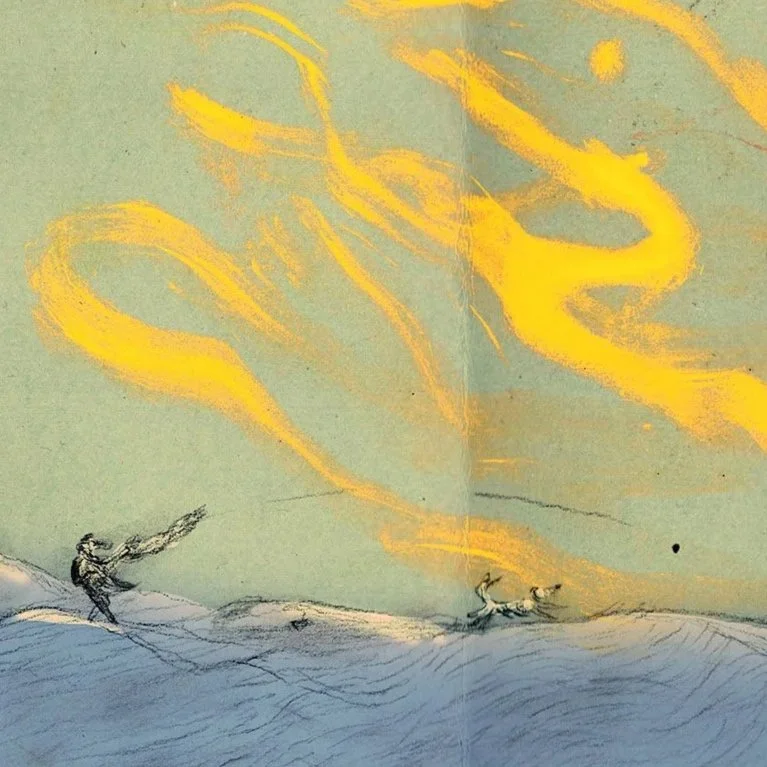 A personal project inspired by a winter walk by the river. The image of a long-haired dog running in the sun stayed with me and returned again and again in my sketchbooks and illustrations.
